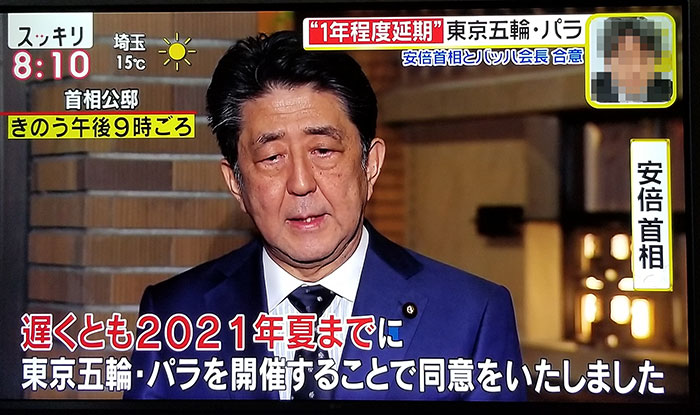 2020년 3얼 24일 오후 9시경, 일본 총리가 도쿄 올림픽을 1년 연기한다고 발표했습니다.