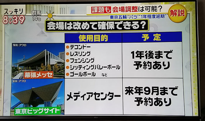 이로인해 1년후까지 예약이 가득차있는 장소여서 올림픽 연기로 인해 어떠하게 움직일지 의문입니다.