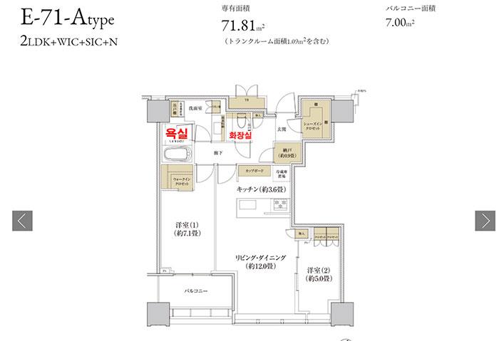 그리고 같은 맨션에 71.81㎡인 약 21평짜리 평면도입니다.