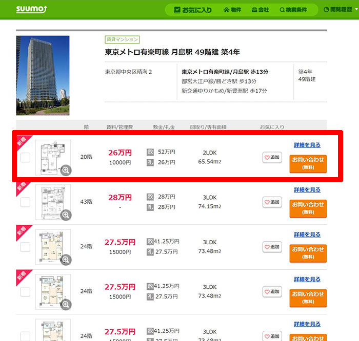 도쿄에서 타워맨션을 월세로 살기에는 많은 돈이 들어갑니다.