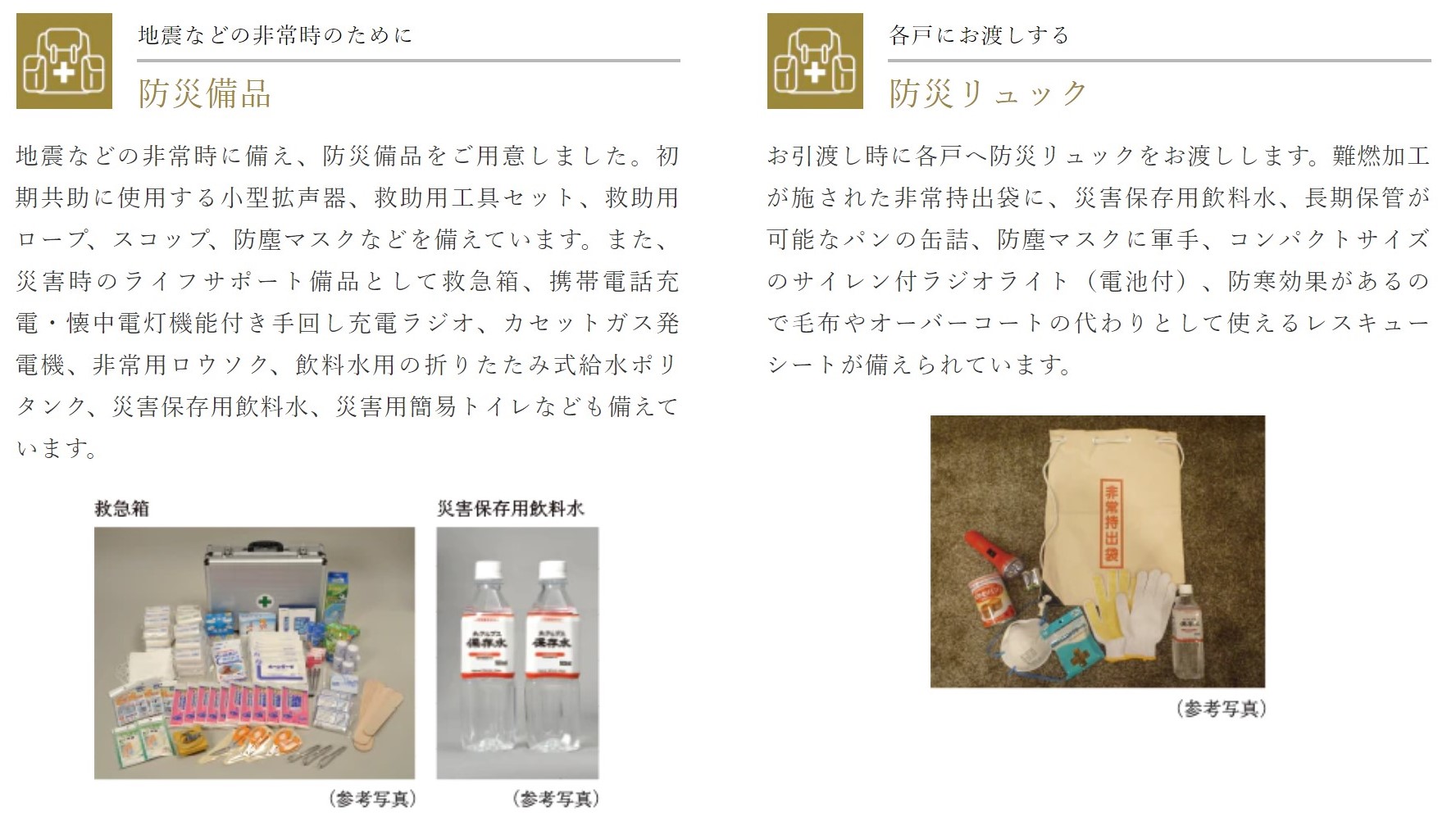 사람들이 많이 사는 큰 맨션일수록 방재비품이 잘 구비되어 있습니다.