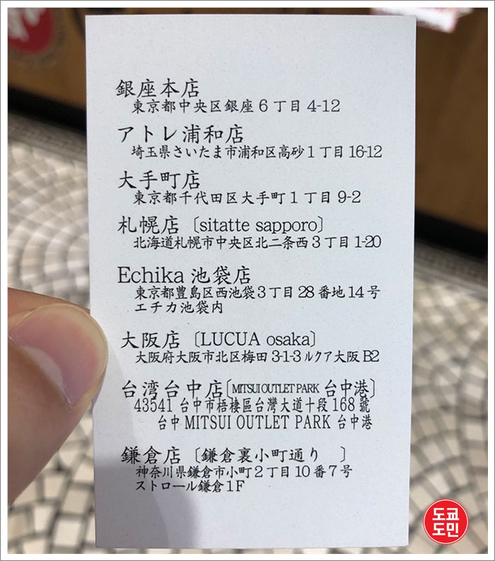 긴자 카가리는 도쿄외에도 사이타마, 오사카, 카마쿠라, 홋카이도에 점포가 있습니다.