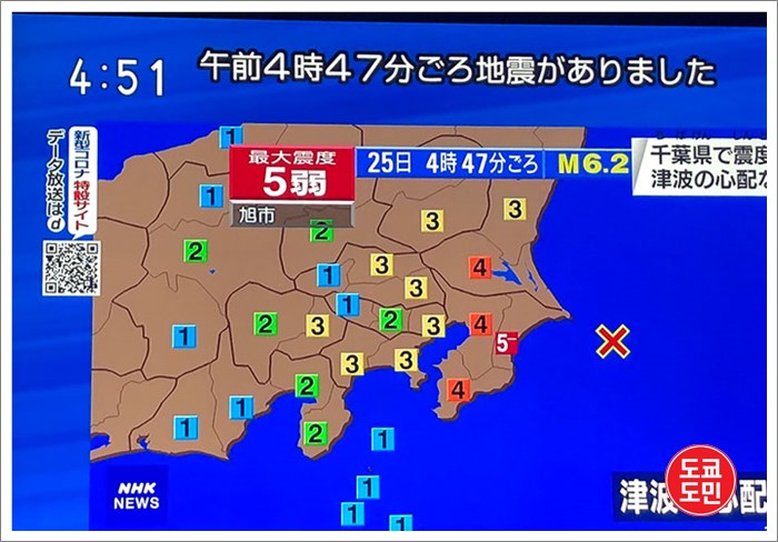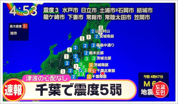 도쿄 바로 옆인 나리타공항이 있는 지바(치바)현에서 진도 5약!