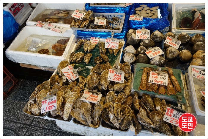 굴, 새우, 관자, 오징어등 가게내에서 바로 먹을 수 있는 곳도 있었는데요.