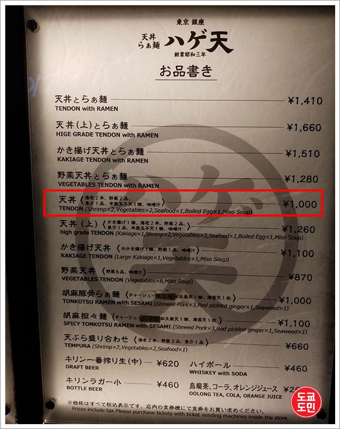 우연히 긴자에서 발견한 텐동전문점 "하게텐(ハゲ天)".
