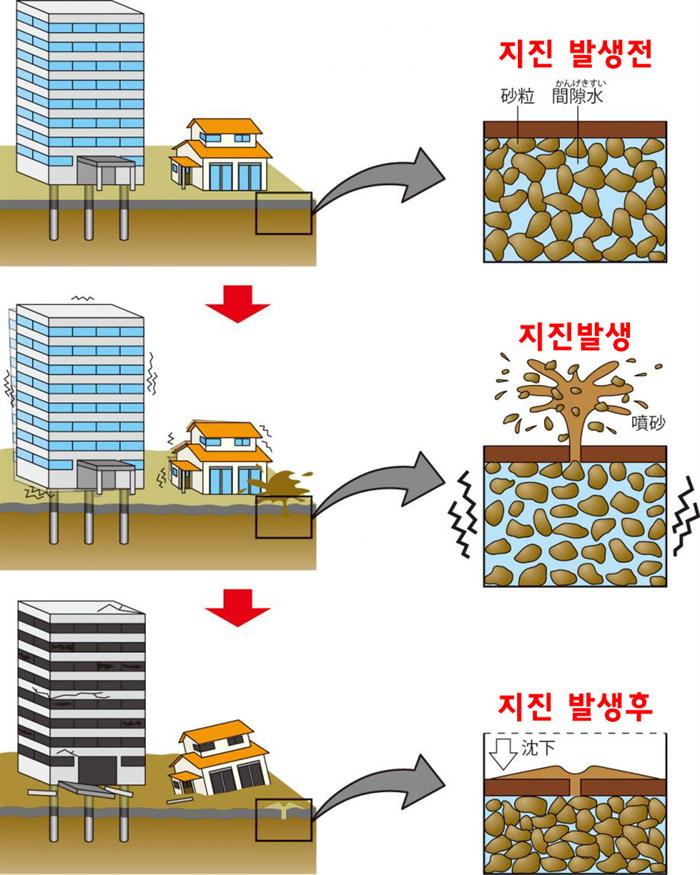 지진이 날때마다 지면이 흔들리면서 땅이 내려앉거나 땅속에 있던 물이 올라오거나 하는 현상인데요.
