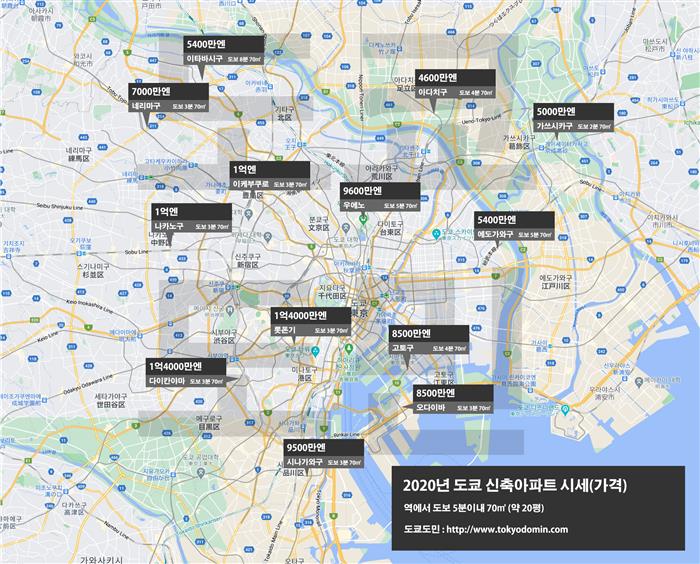 롯폰기, 시부야, 이케부쿠로는 보통 1억엔(약 10억원)이 넘습니다.