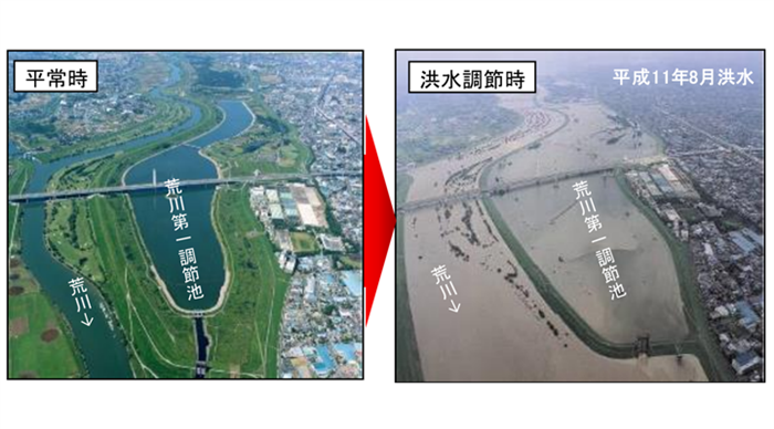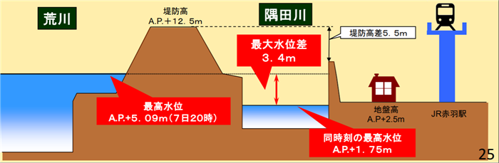 아라카와강이 넘치면 주변 지역은 수면보다 지면이 낮기 때문에 홍수사태가 터집니다.