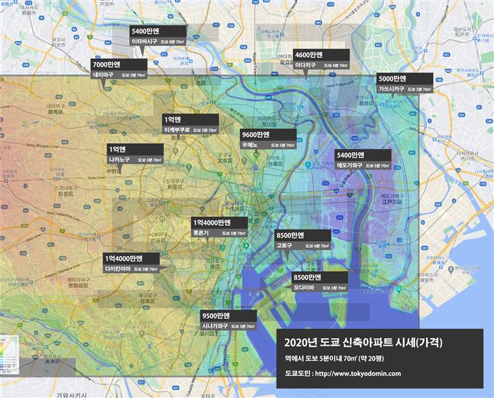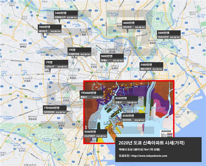 도쿄 지역별 맨션(아파트) 평균 가격(시세)