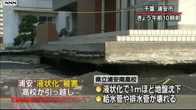 2011년 3월 11일 대지진이 발생후에 도쿄 디즈니랜드와 도쿄 옆지역인 지바현(치바현)에서는 수많은 곳에서 액상화현상이 발생하여 도로가 울퉁불퉁하게 뒤틀리면서 땅 밑에 있던 지하수가 지면위로 올라와서 물바다가 되기도 했으며 건물들이 기울어지기도 하는 문제가 발생했습니다.