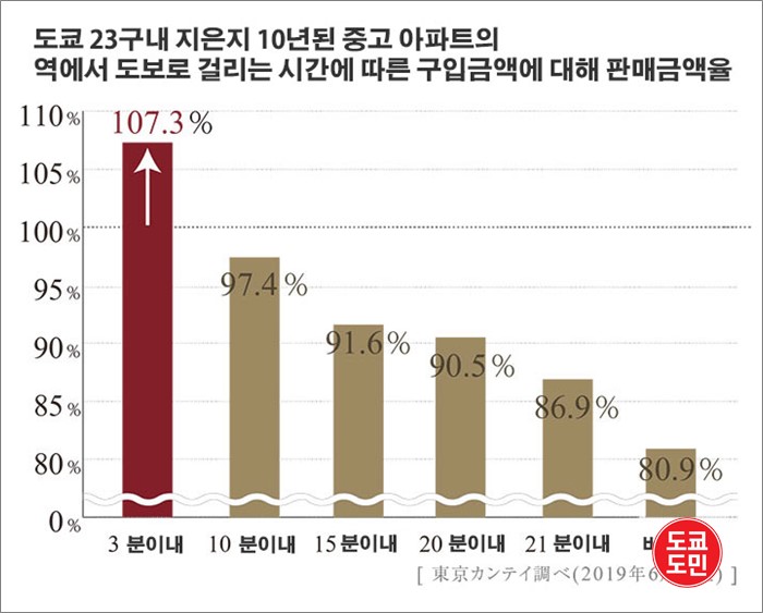 우선, 맨션(아파트)를 구입할 때에는 지하철역에서 가까울수록 부동산 가치는 떨어지지 않습니다.