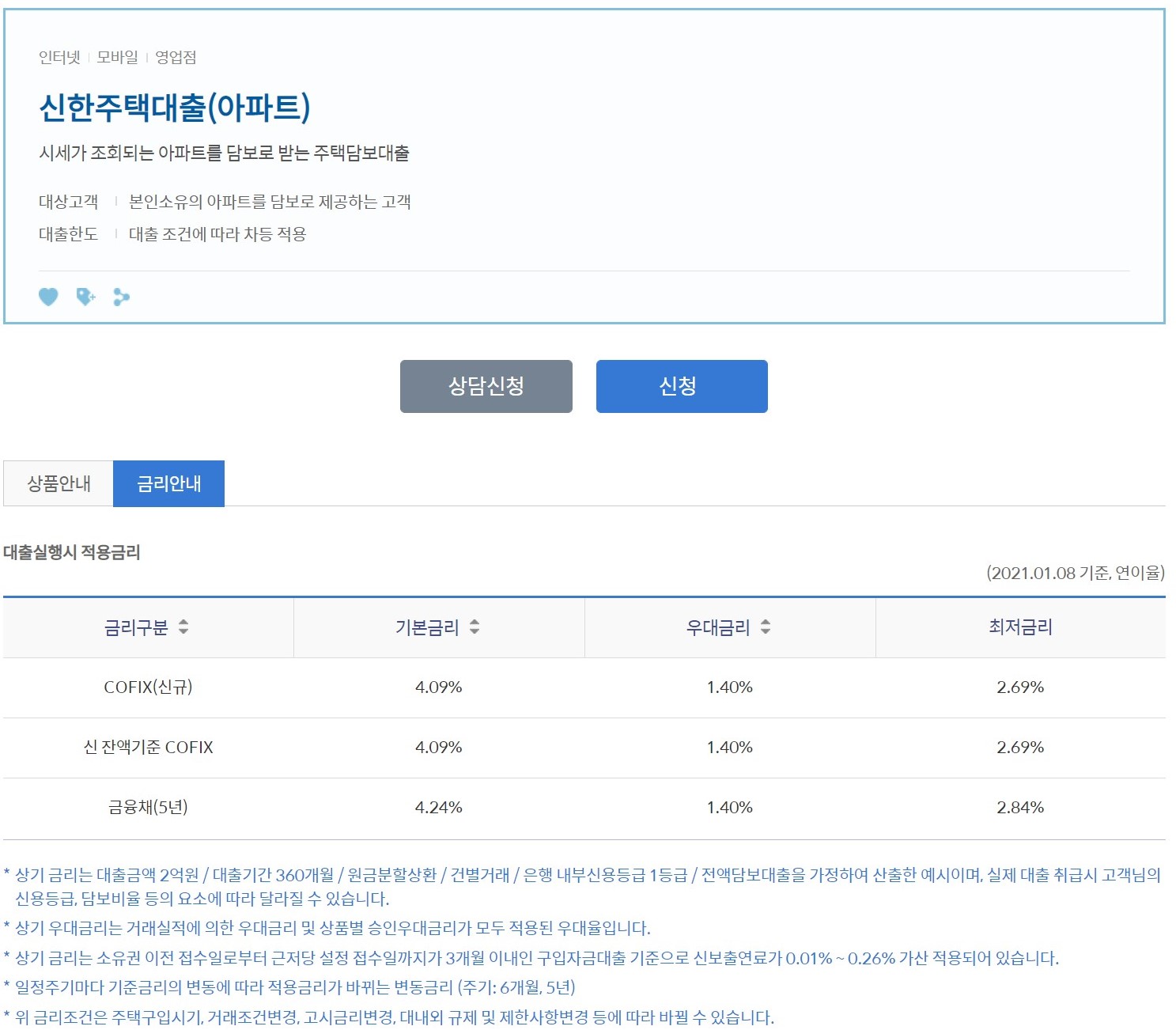 특정 아파트(맨션)을 구입한 고객에 한해서 0.05% 우대금리가 적용되어,