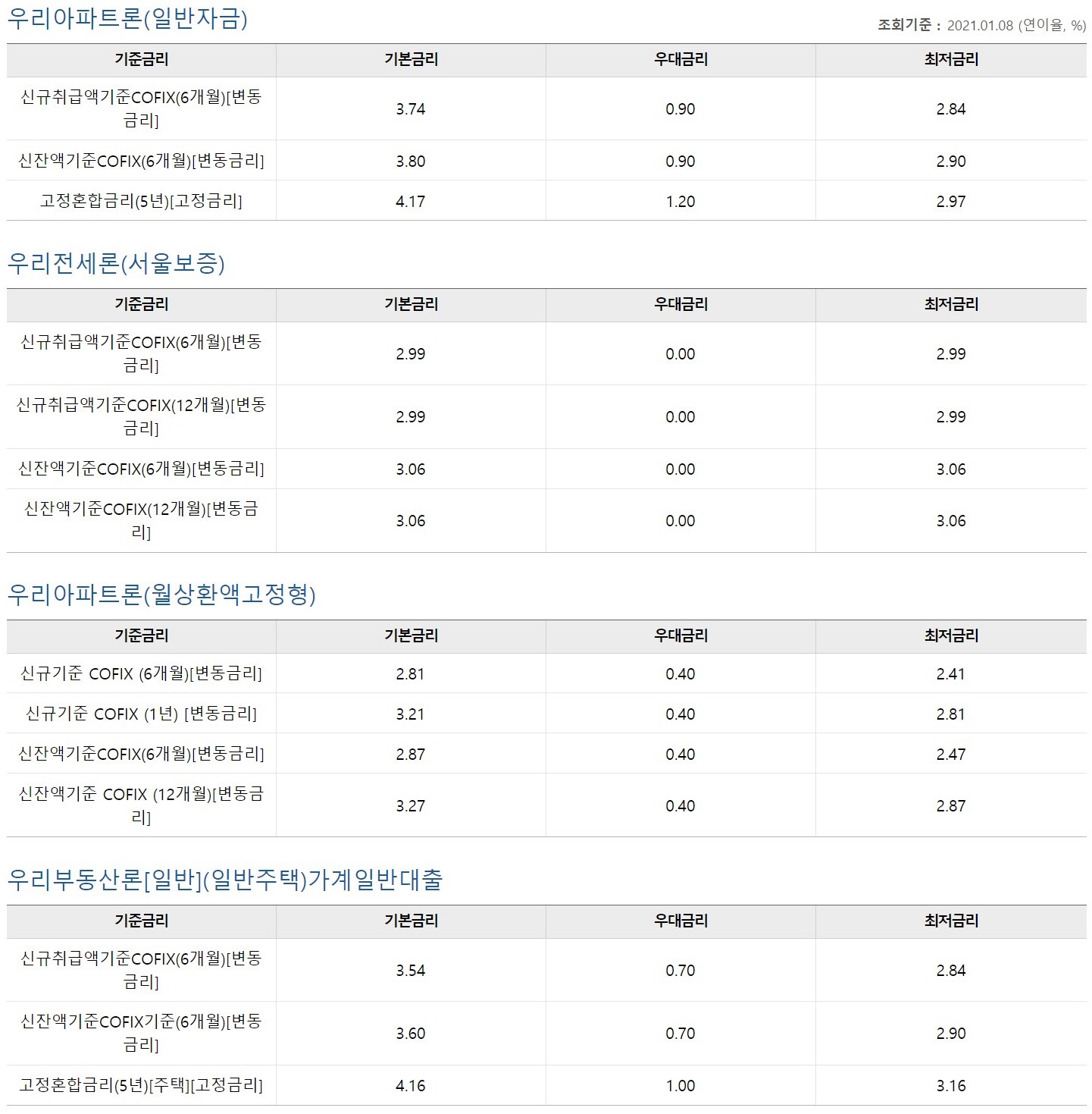 그외 다른 상품을 보아도 최저금리가 2.5%정도이네요.