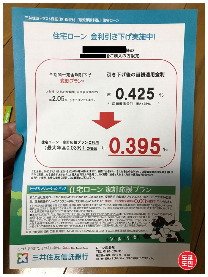 저의 경우에는 "미쯔이 스미토모 신탁은행"이라는 곳에서 대출을 받았습니다.