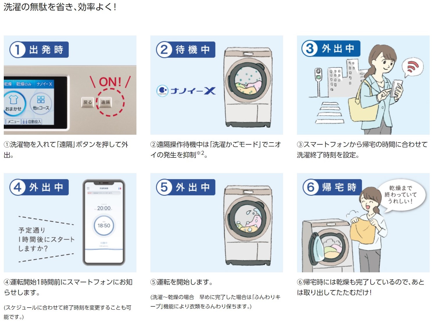 집에 도착하는 시간에 맞춰서 스마트폰으로 세탁종료시간을 설정하면 거기에 맞춰서 세탁에서 건조까지 해준답니다.