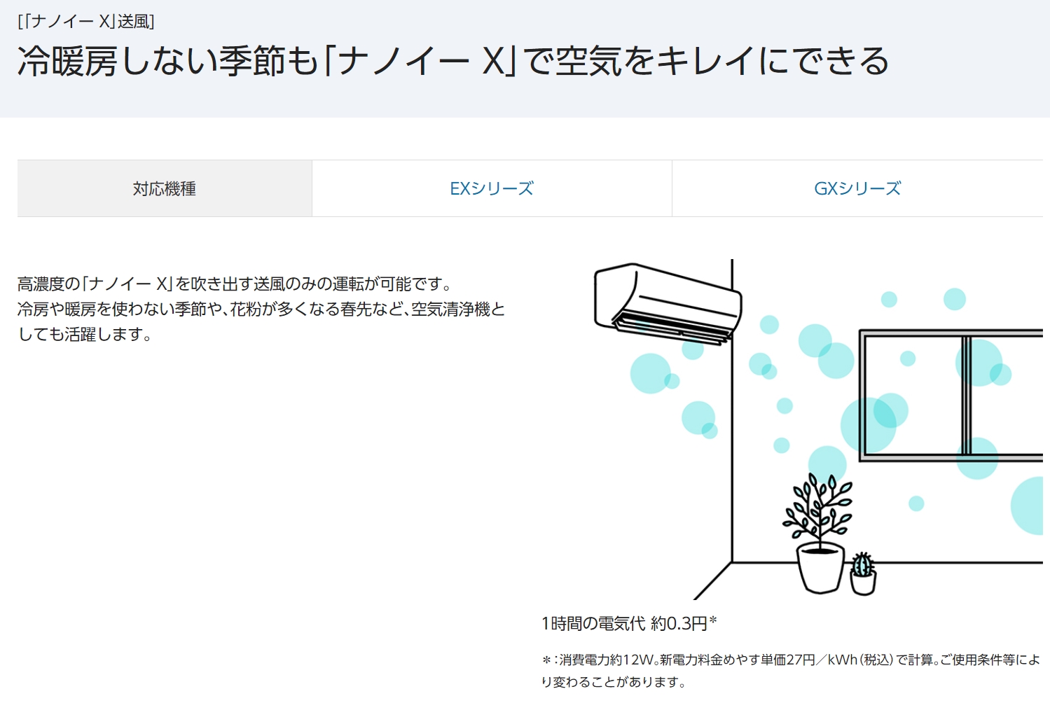파나소닉의 기술인 nanoeX 는 공기중의 유해물질을 분산하여 공기청정을 하고 있답니다.