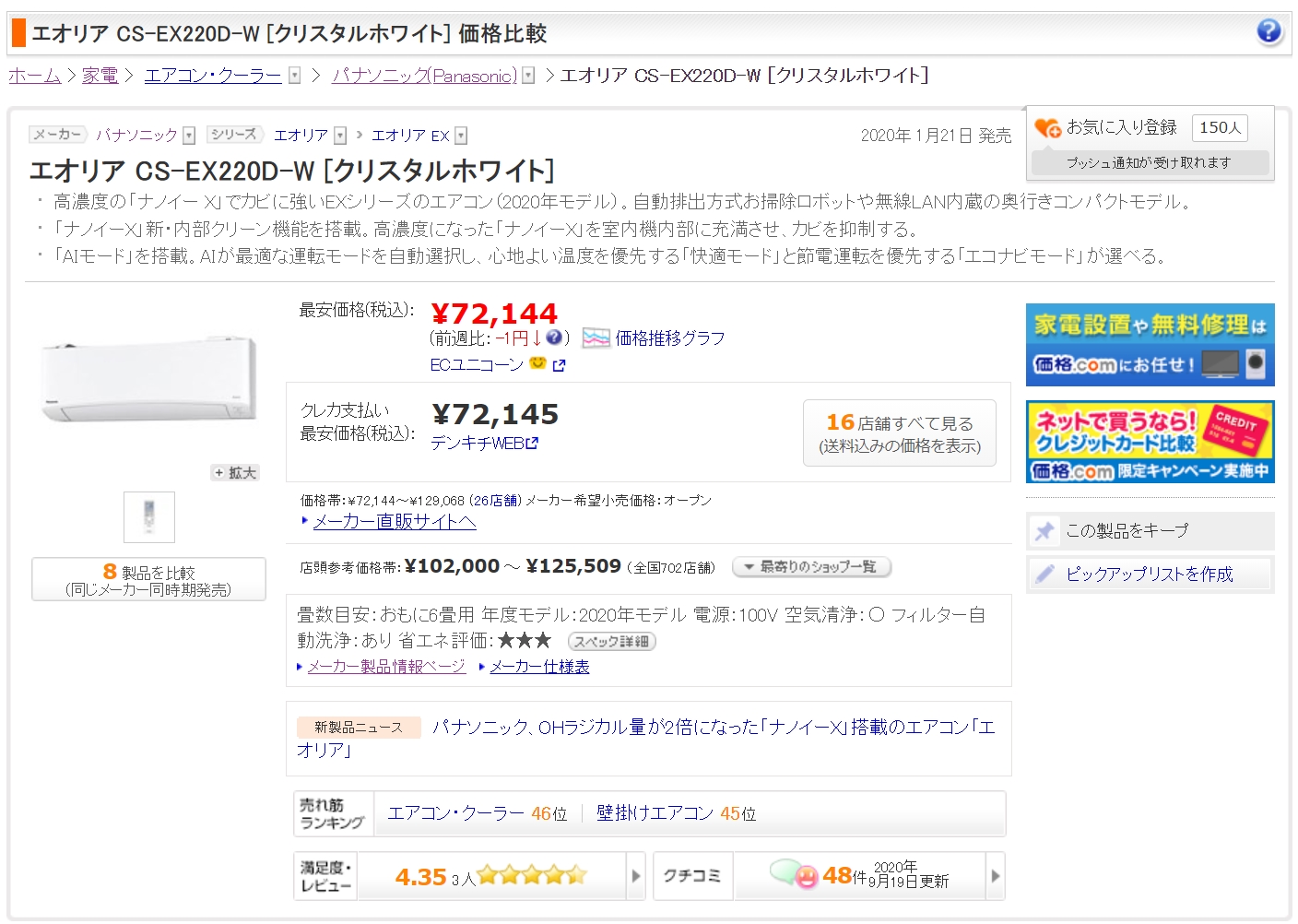 30만엔(약 300만원)을 넘는 에어컨을 16만엔(약 160만원)에 구입을 했습니다.