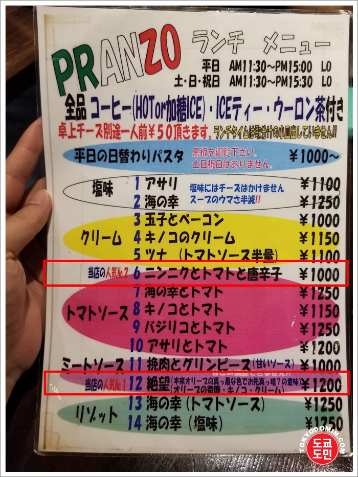 6번 : 마늘과 토마토와 고추 파스타 : 1000엔