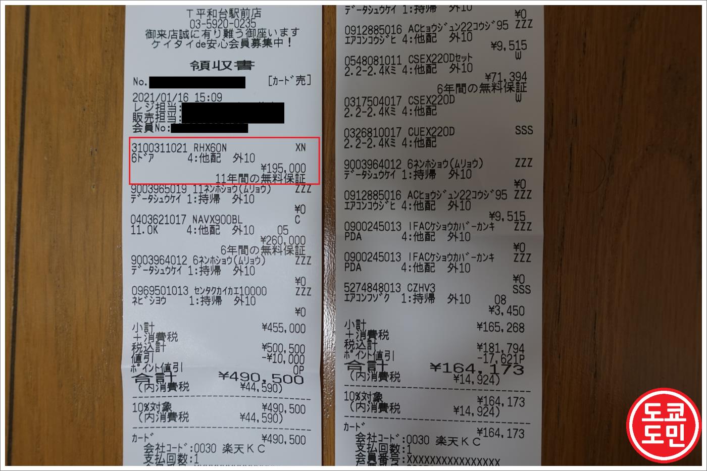 점포에서도 표시가격은 23만엔(230만원)정도였는데 깍아달라고 해서 깎고 깎고해서 저 가격에 11년 무상수리보증, 설치까지해서 198,000엔!