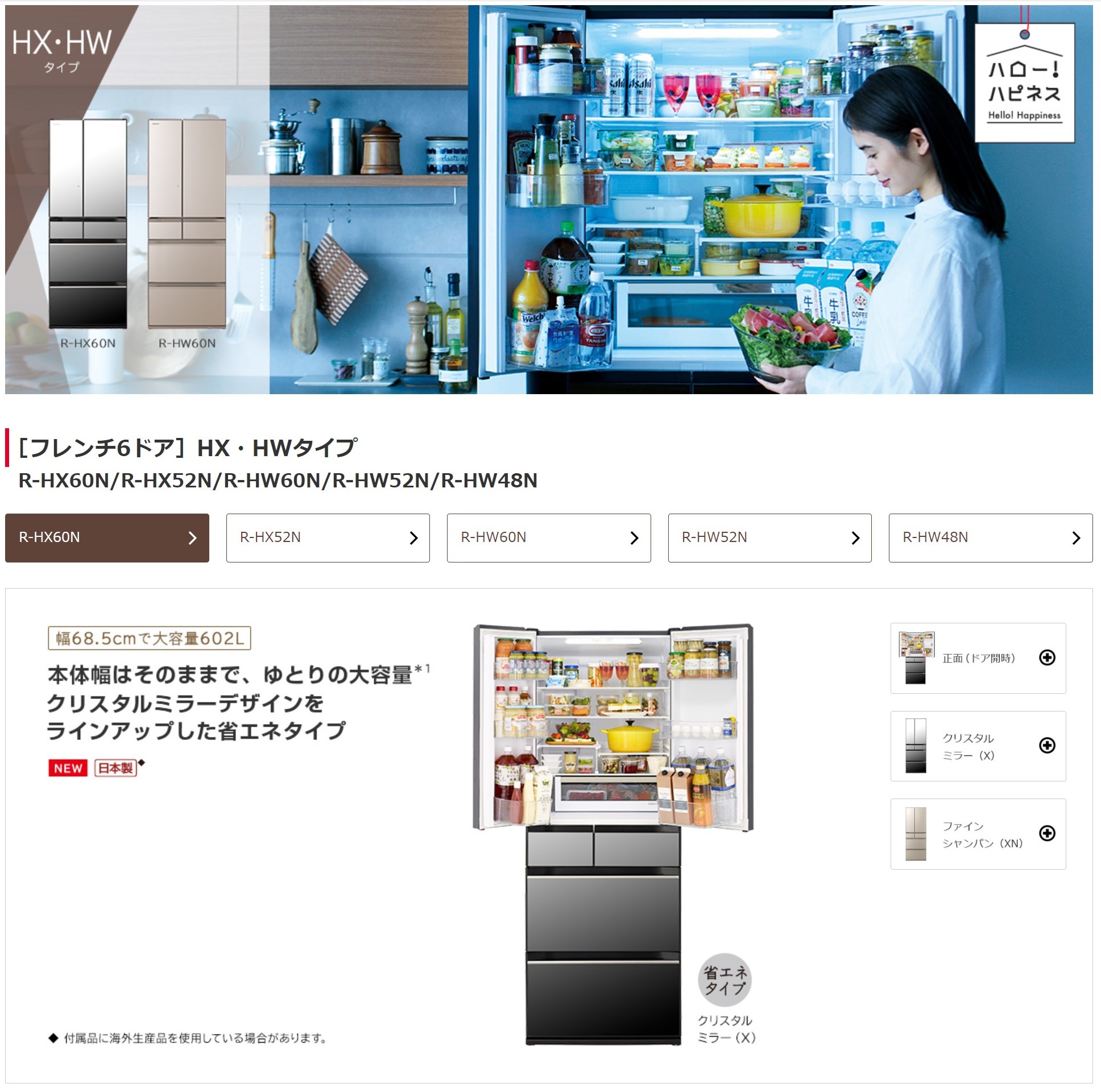 아! R-HX60N 냉장고 말고도 성능과 디자인은 동일한데 전기를 조금 더 많이 먹는 모델 R-HW60N 도 있습니다.