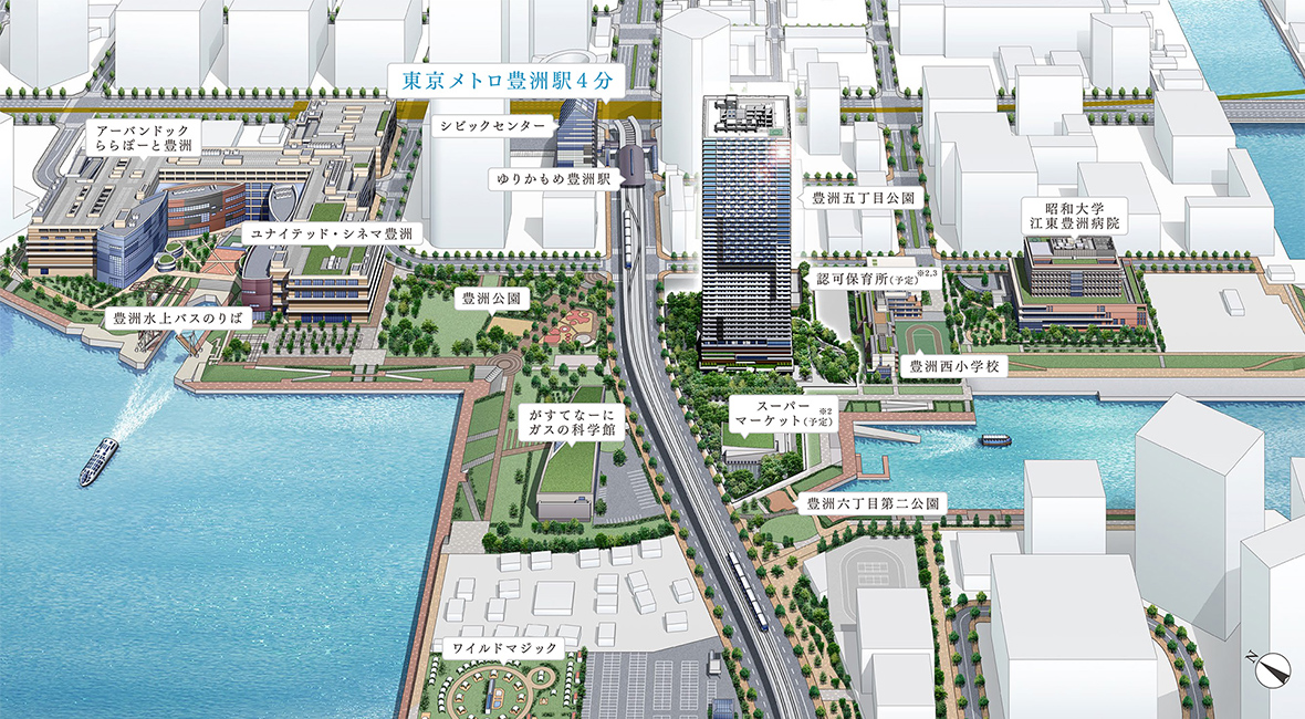 브란즈타워 도요스(토요스)는 역에서 4분 걸리는 곳에 있고, 주변 환경이 아주 좋습니다.