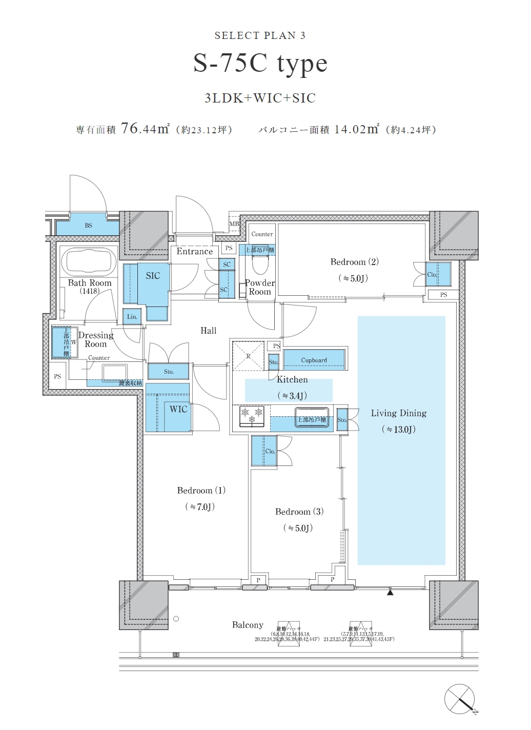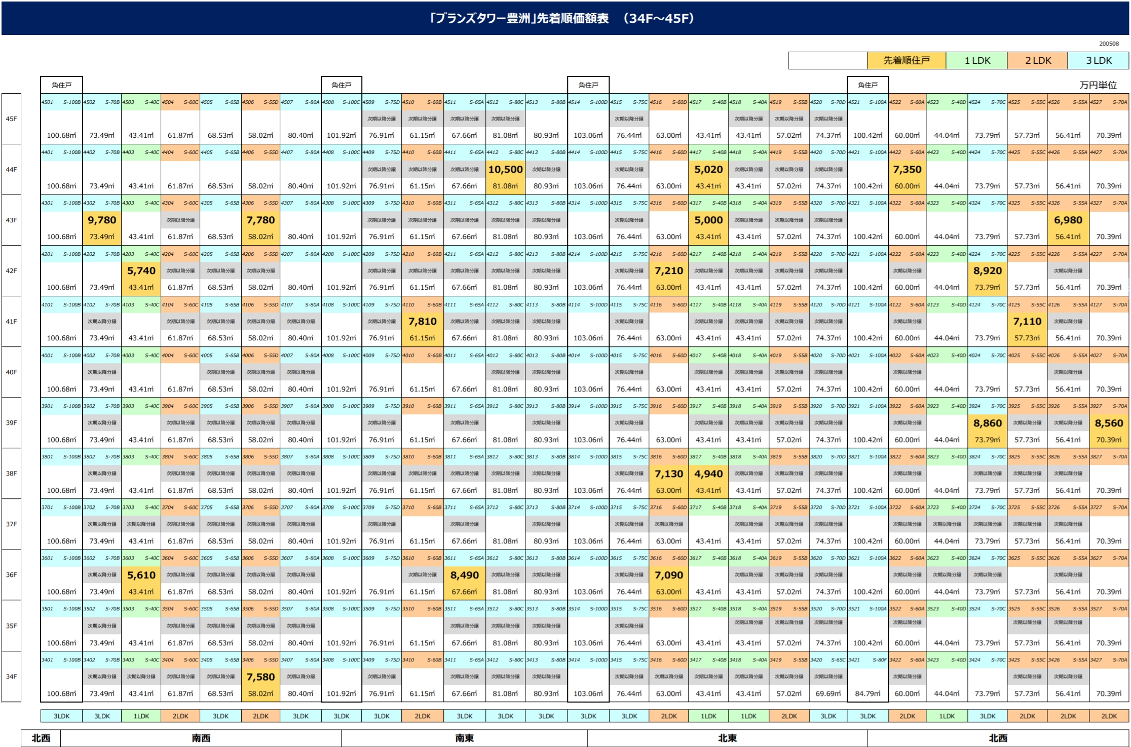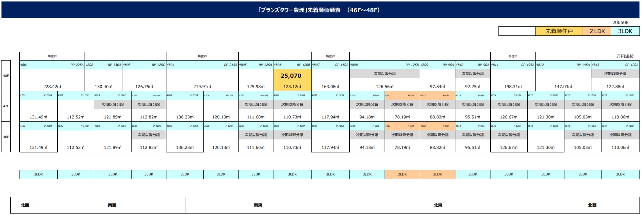 제일 큰 집이 228.42㎡(69평)으로 45층에 남서향으로 있습니다.