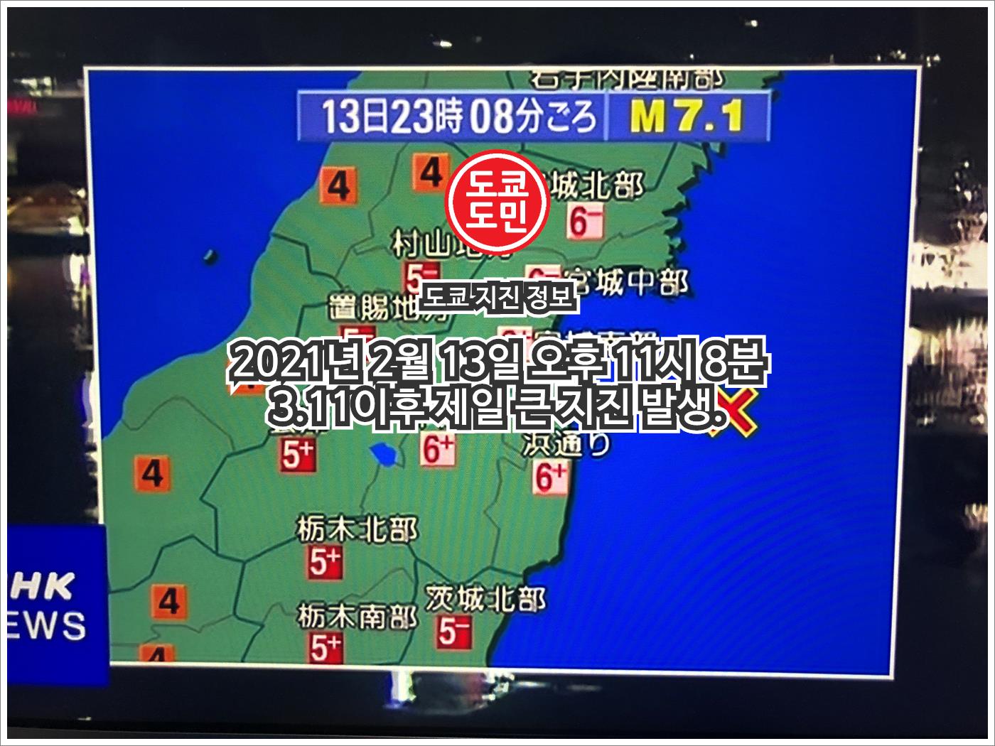 10년전인 2011년 3월 11일 후쿠시마 대지진 이후로 가장 큰 지진인거 같습니다.