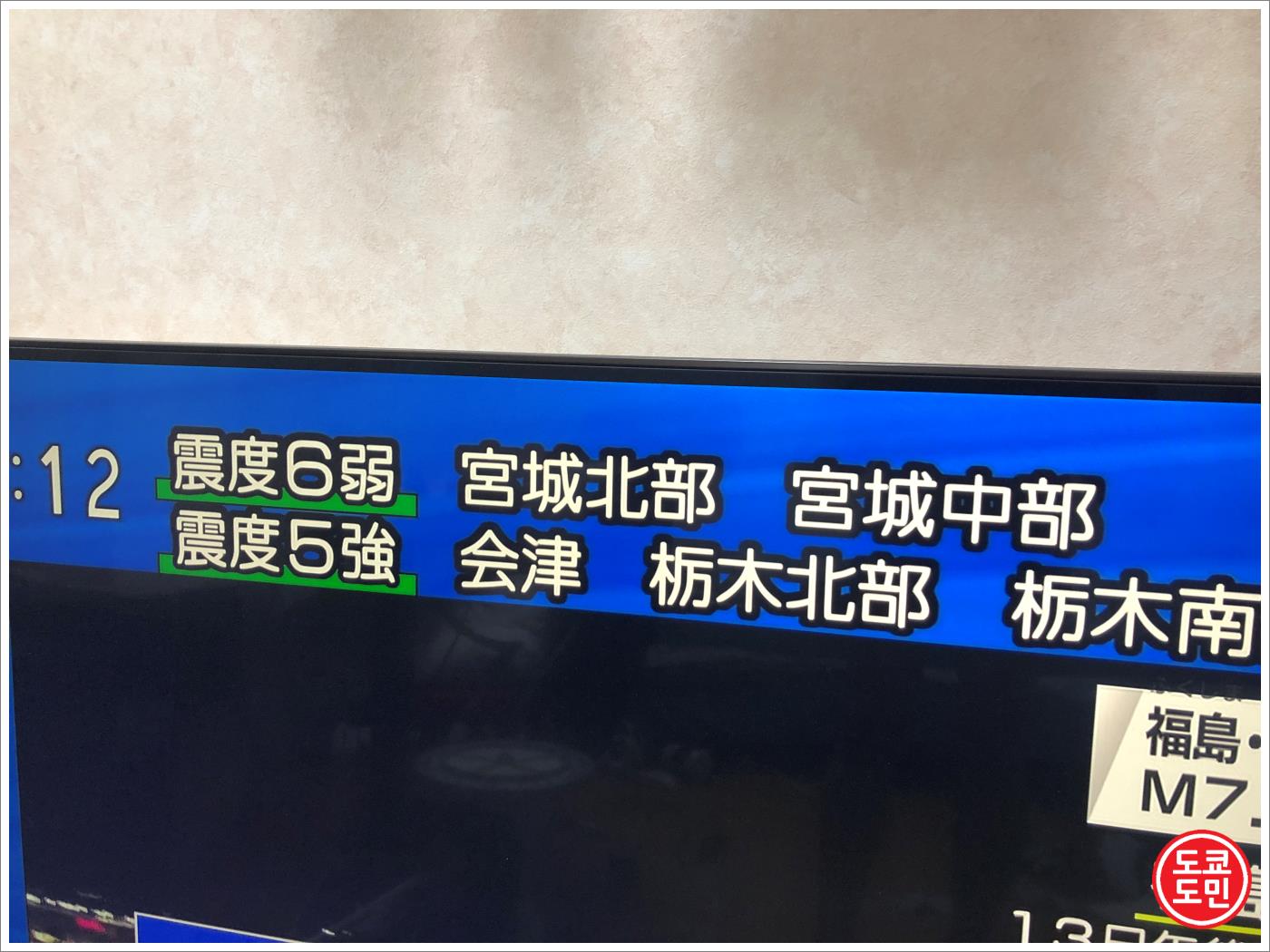 후쿠시마 주변에서 진도6강으로 가장 강했고, 그로 인해 도쿄는 진도4로 흔들렸습니다.