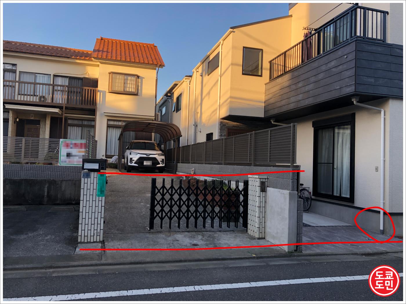 왼쪽에 빨간색으로 표시한 집은 신축 단독주택이고요.