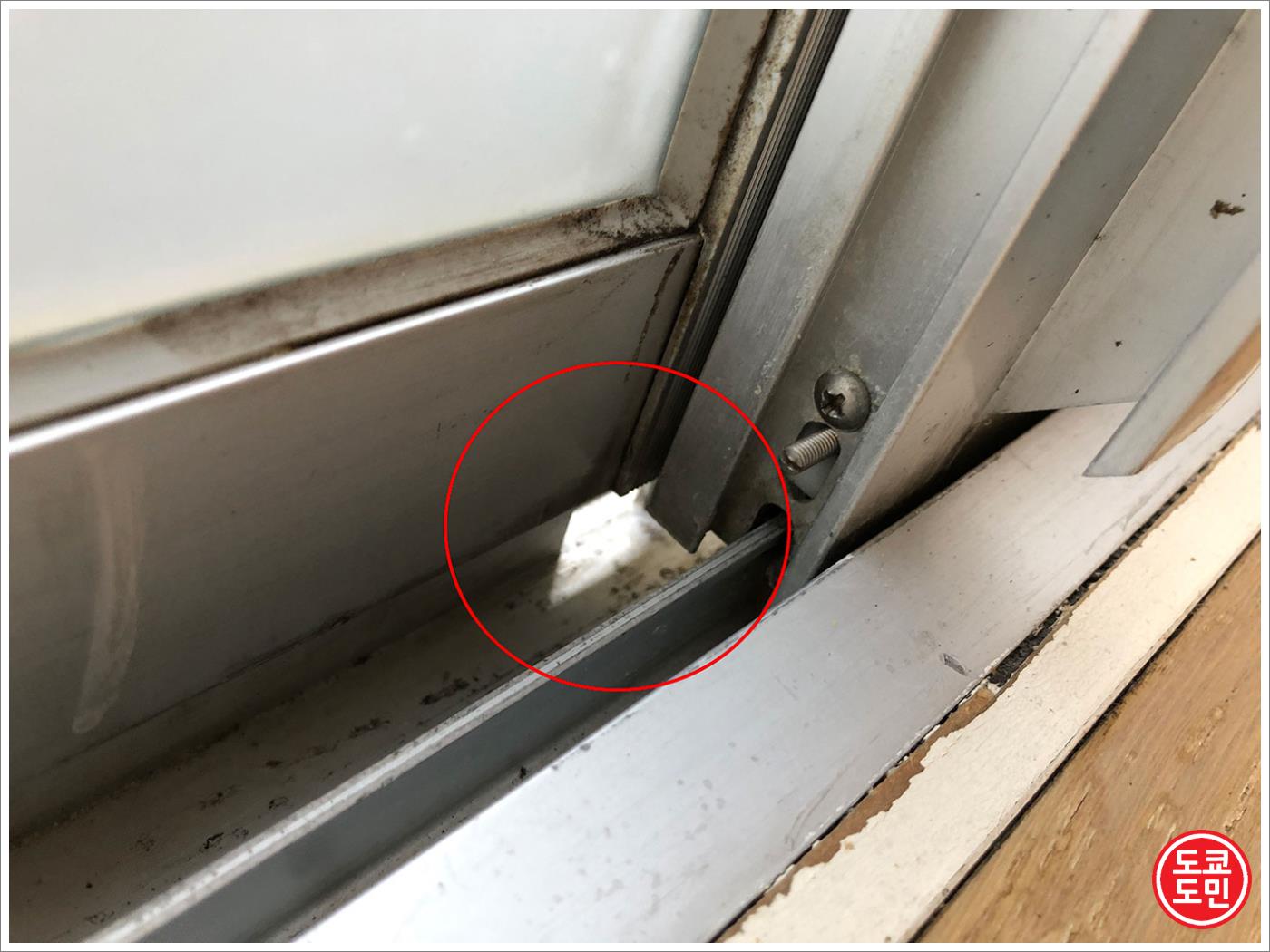 창틀에 물이 생기면 물이 빠져나가게 하는 구멍인데 저렇게 완전 노출되어 있다보니 계속 찬바람이 들어옵니다.