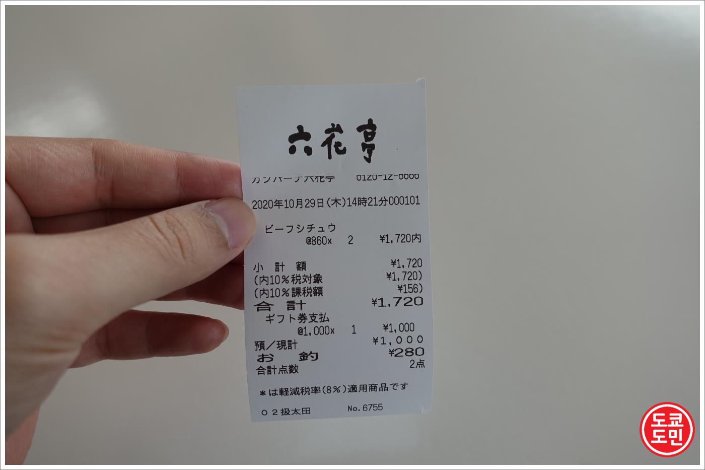 비프시츄 2개 주문하고, 기프트카드 1000엔짜리 써서 720엔에 먹었네요.