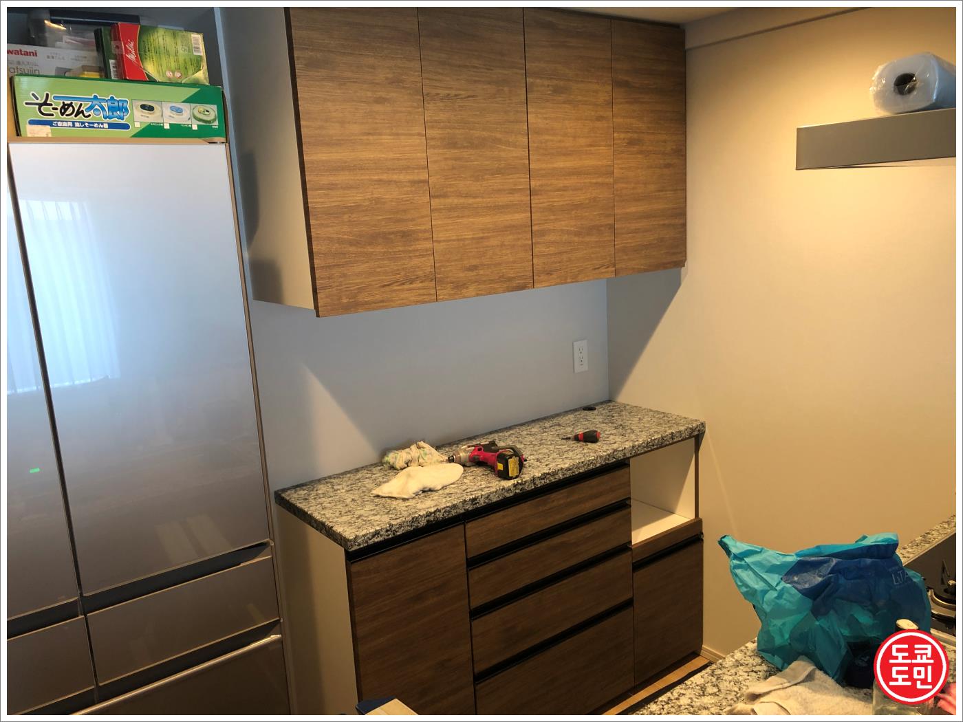 도쿄 23구내에 맨션(아파트)를 구입후 싱크대 수납장을 추가공사를 했습니다.