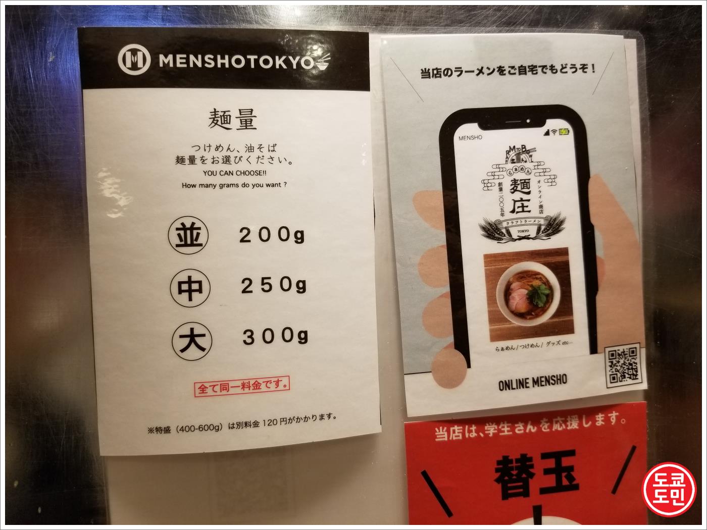 그곳말고 조금만 걸으면 저렴하면서도 맛있는 가게들이 많이 있는데, 그중에 라멘(라면) 맛집인 "멘쇼 도쿄(MENSHO TOKYO)"라는 곳을 추천합니다.