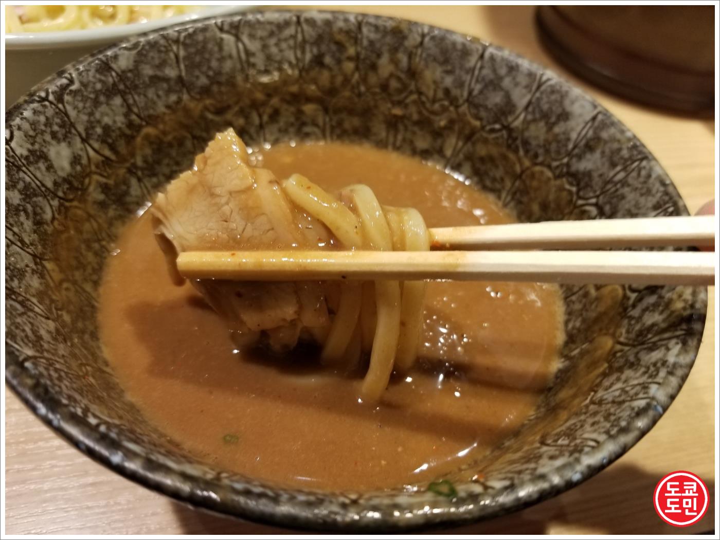 면은 가게에서 만드는 면으로 츠케멘에 맞는 굵은면입니다.