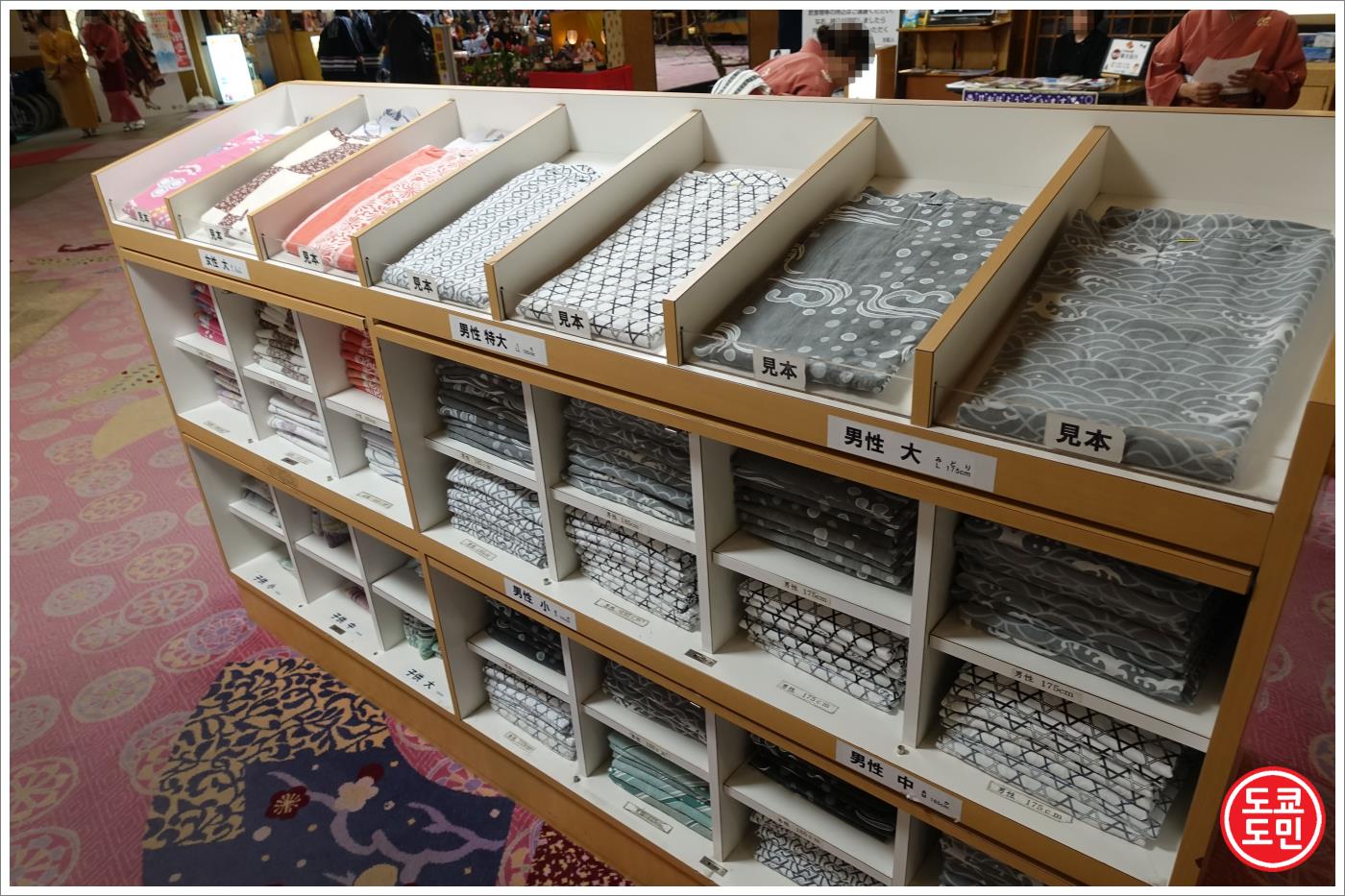 유카타 디자인과 색상도 여러가지가 있어서 체크인하고 방으로 가는길에 직접 골라서 가게 되어 있더라고요.