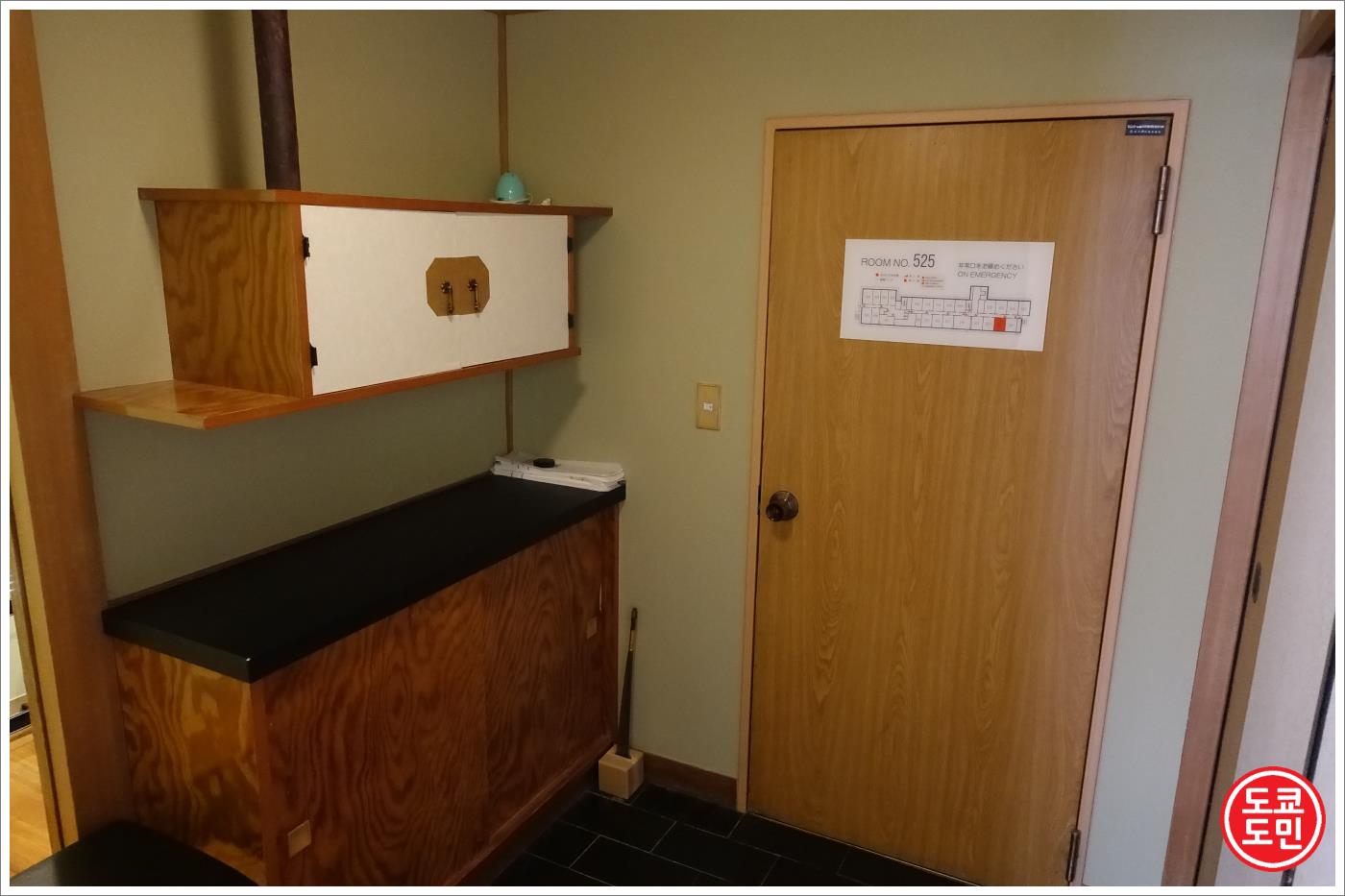 객실로 들어와서 들어온 문을 찍은 사진입니다.