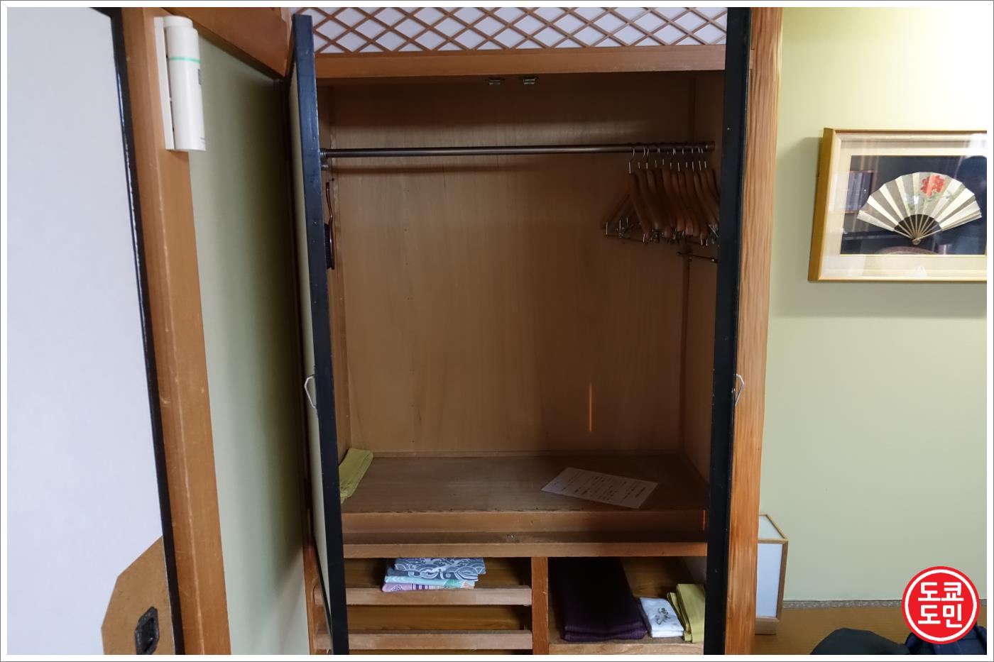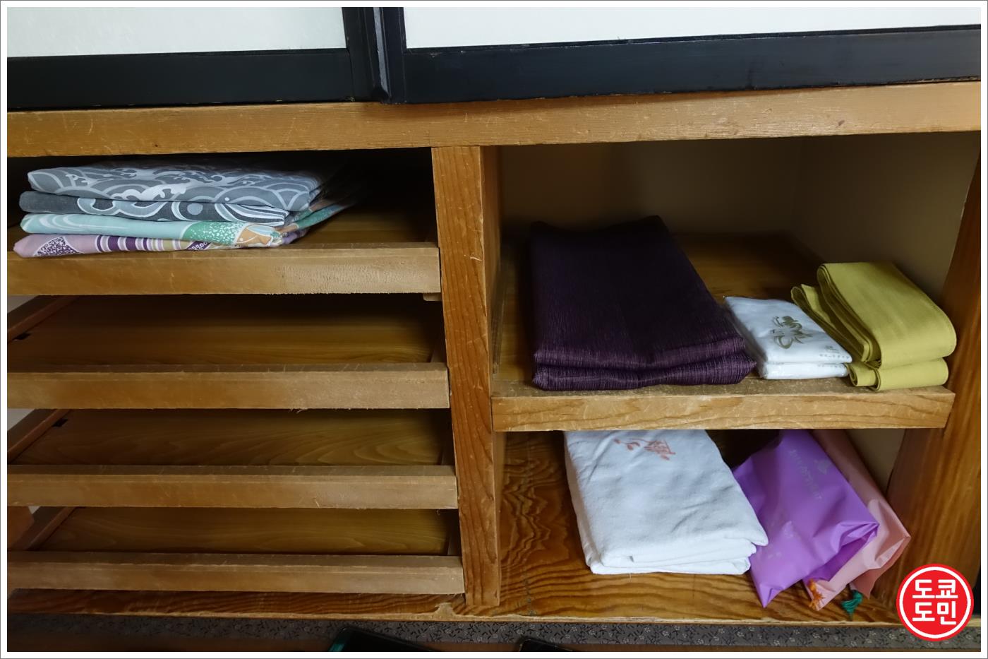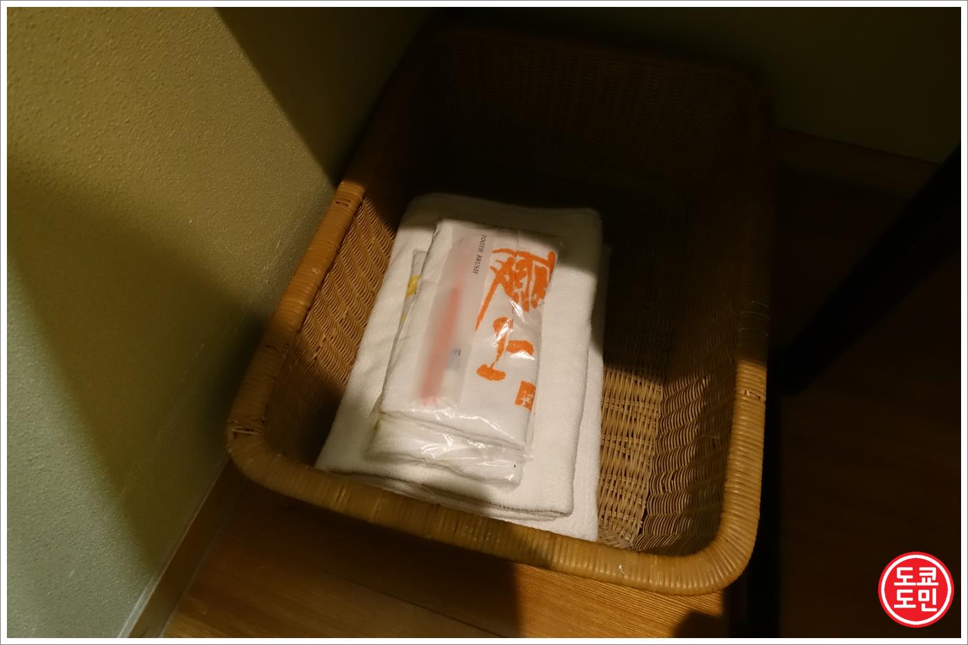 그 밑에 타올과 온천할때 필요한 세면도구가 들어있습니다.