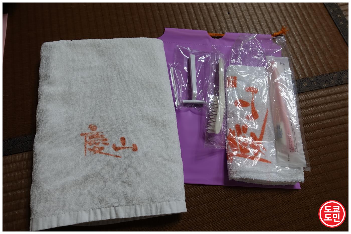 왼쪽에 있는 큰 타올은 온천하고 나서 물을 닦을때 쓰고요.