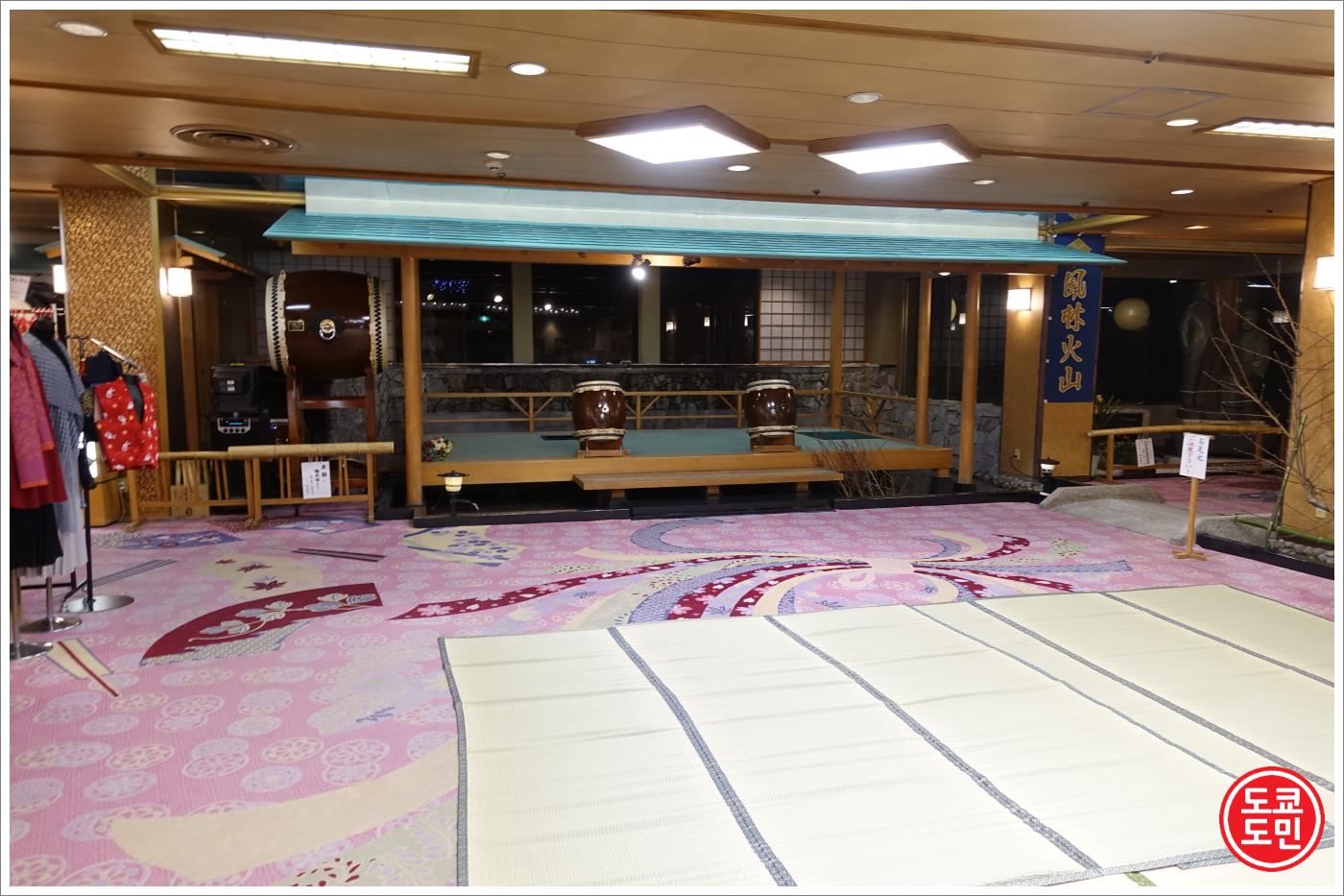 그리고 1층 로비에 가니 바닥에 돗자리가 깔려있습니다.