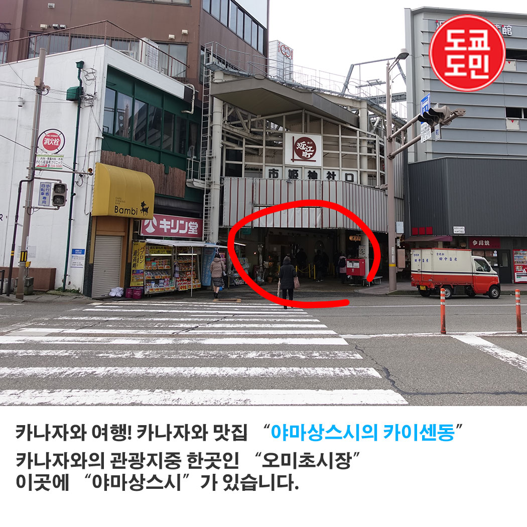 오미초시장 입구 바로 앞에 야마상스시가 있습니다.