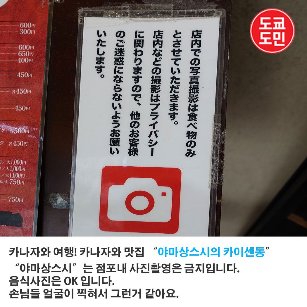 다만, 음식 사진은 찍어도 된다고 합니다.