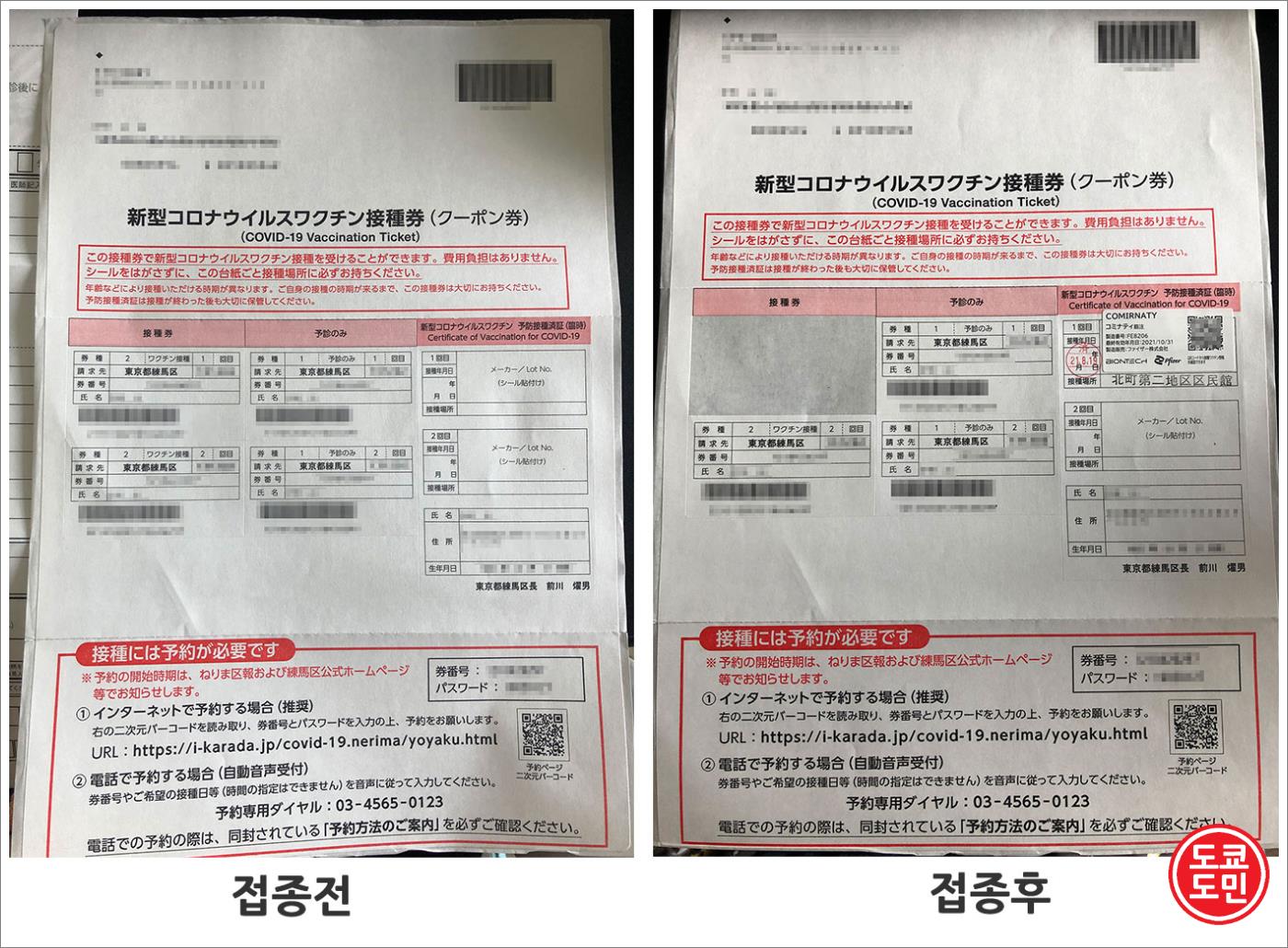 일본의 코로나 백신 접종권에 접종전과 접종후의 변화가 이렇습니다.