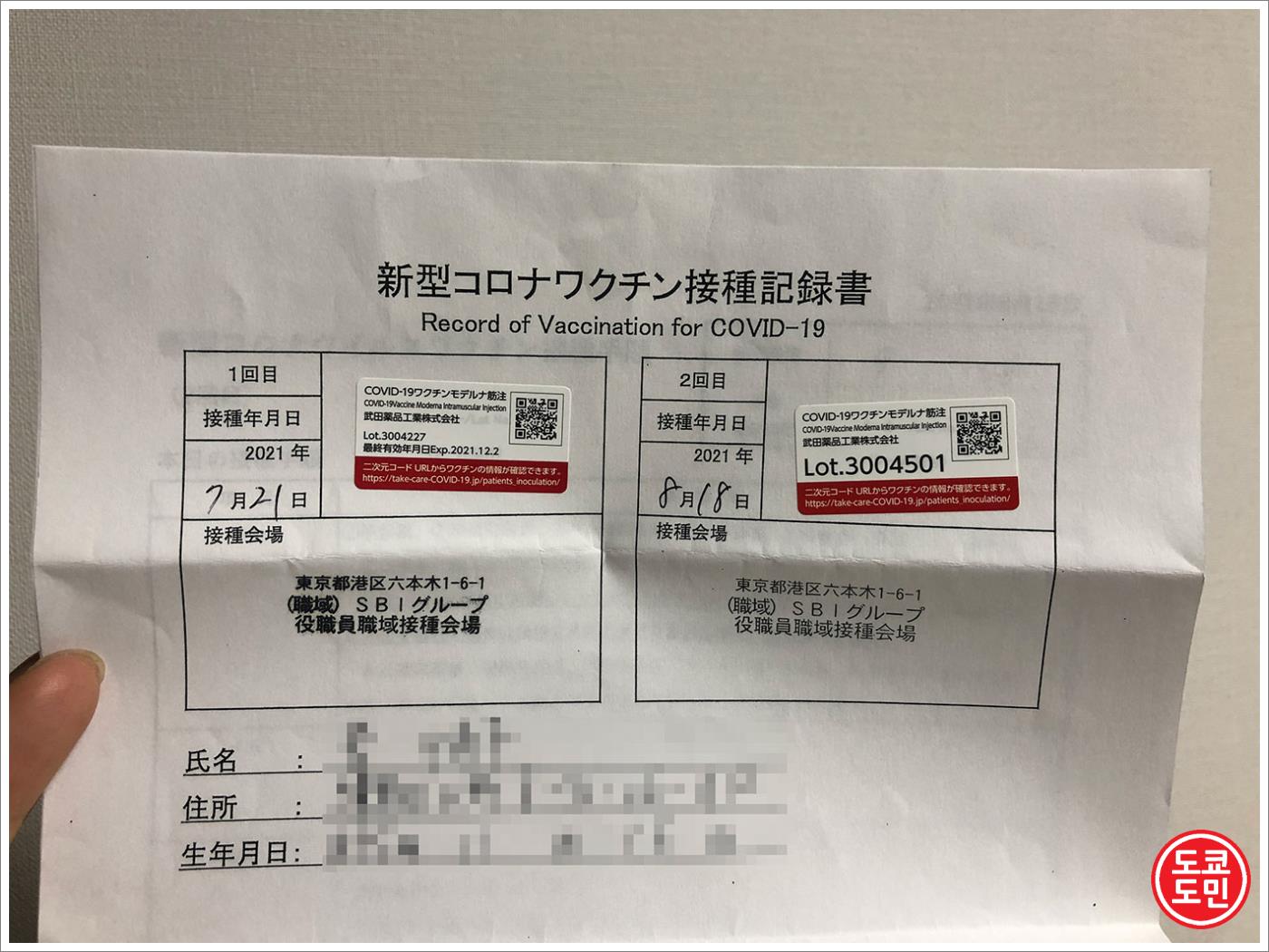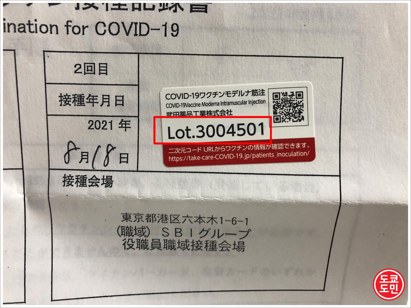 모더나백신의 경우 일본에서는 접종 후 접종일, 백신명, 로트번호가 기재되어 있는 접종증명서에서 확인할 수 있습니다.