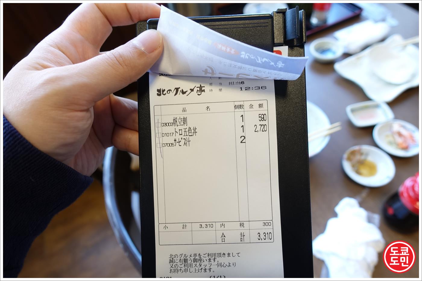 카이센동외에도 다른것도 주문해서 먹어서 총 3310엔.