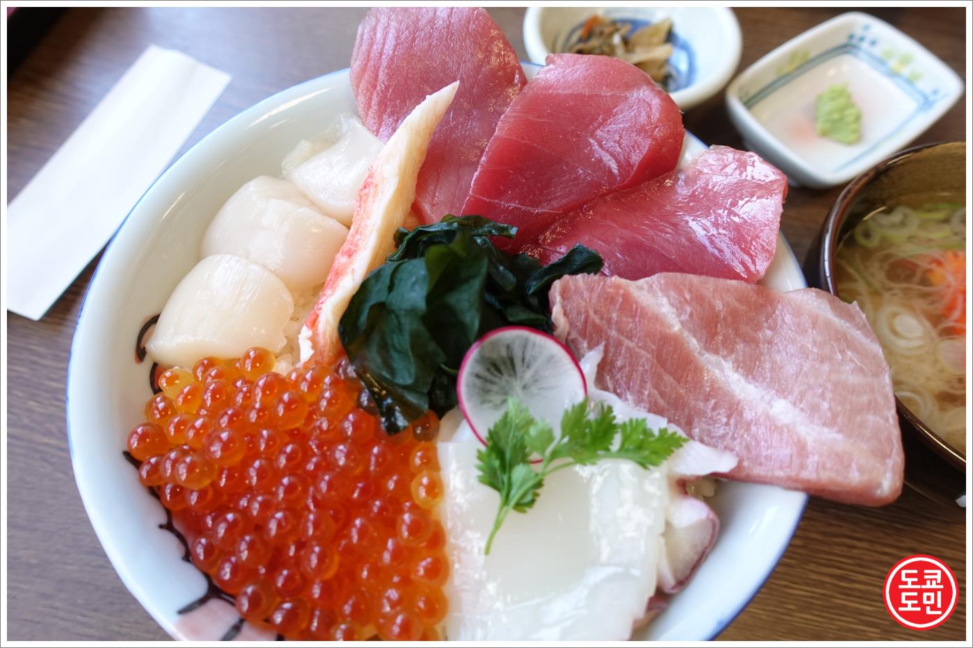 참치, 관자, 연어알, 게살 등이 있는 카이센동인데요.