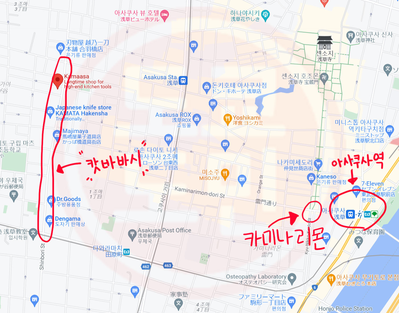 아사쿠사도 구경하고, 이곳 "캇파바시(캇바바시)"도 구경하고 도쿄여행 할때 꼭 들러보세요.