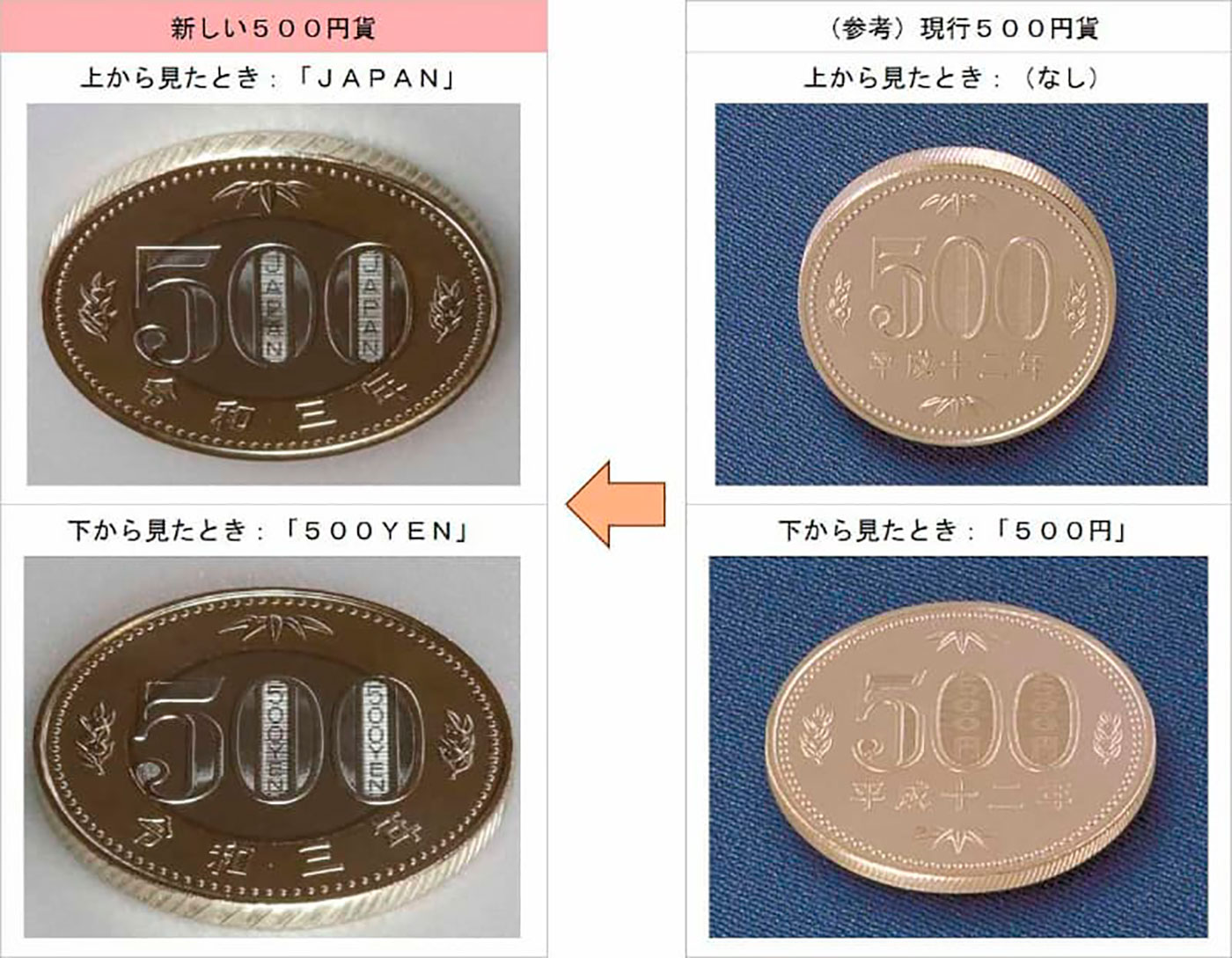 2021년 11월 1일부터 새로운 디자인의 500엔짜리 동전이 유통을 시작했습니다.