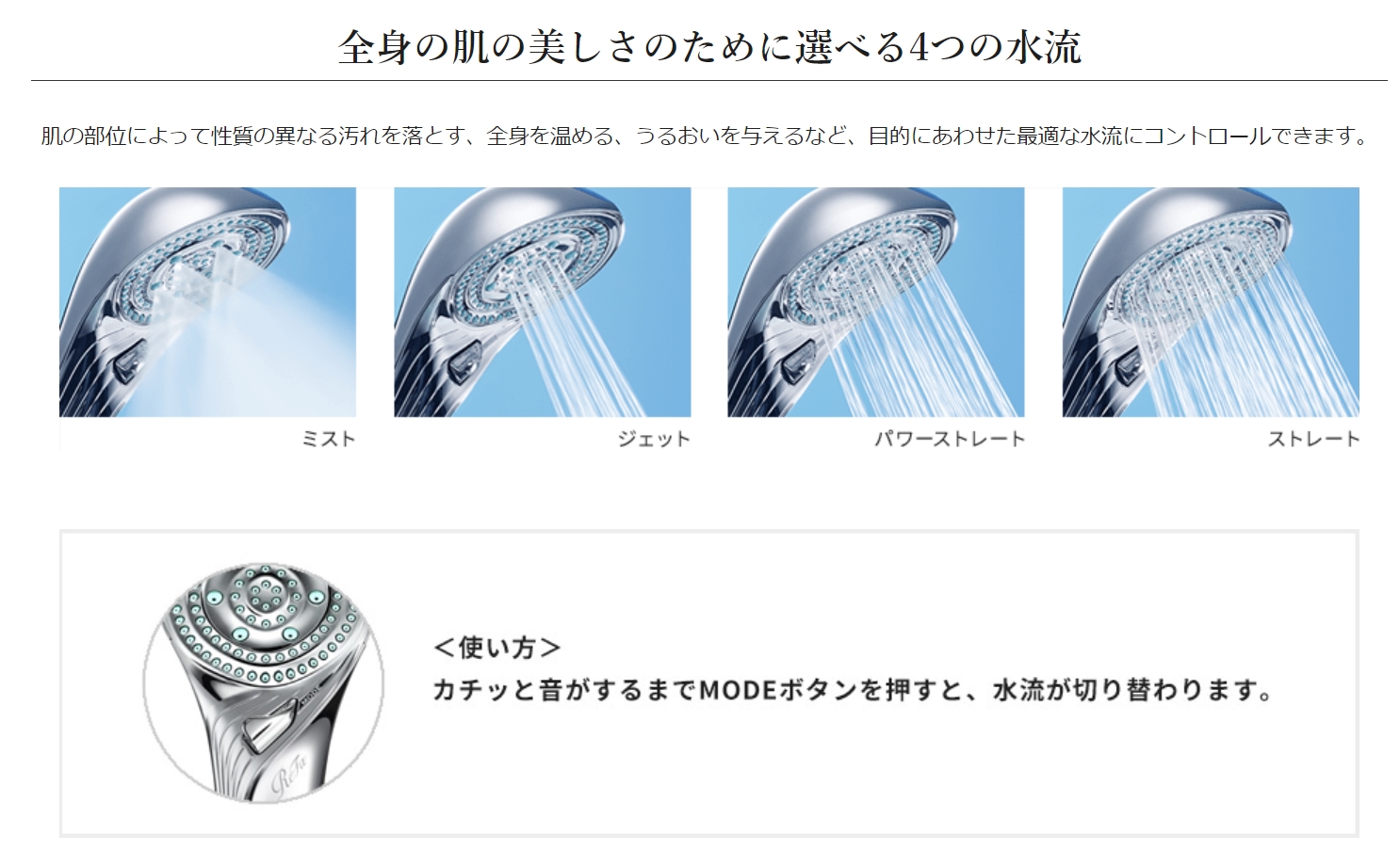 물이 나오는 샤워모드도 4가지가 있습니다.