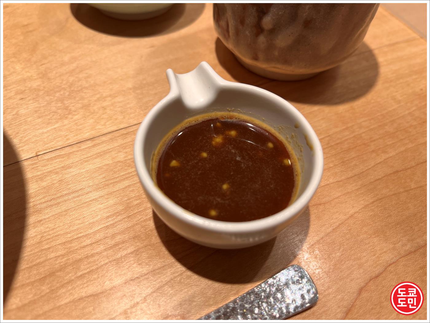 해산물덮밥에 있는 와사비를 이 간장에 넣어서 풀어줍니다.