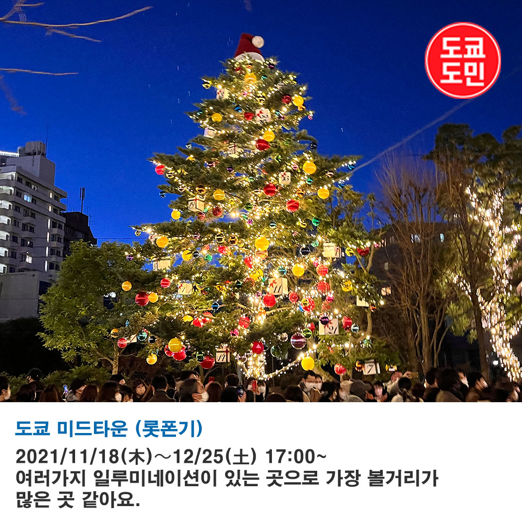 도쿄 미드타운은 일루미네이션 종류도 다양하고, 거대한 일루미네이션쇼도 열리고 하니 꼭 가보시는게 좋습니다.